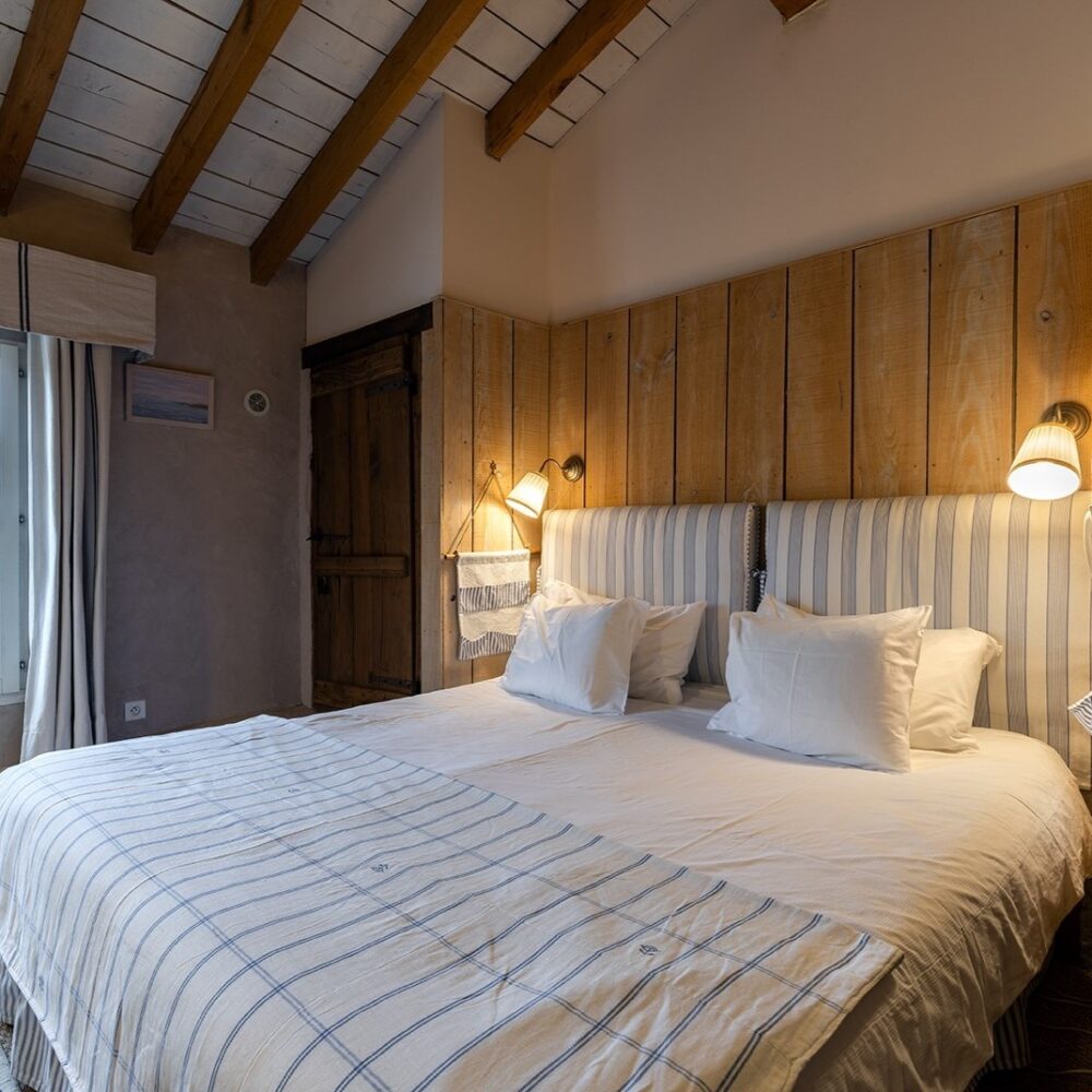 Le lit king-size 180×200 (lits jumeaux sur demande) promet un repos royal, dans un cadre unique et raffiné à Bidart.