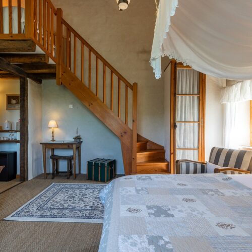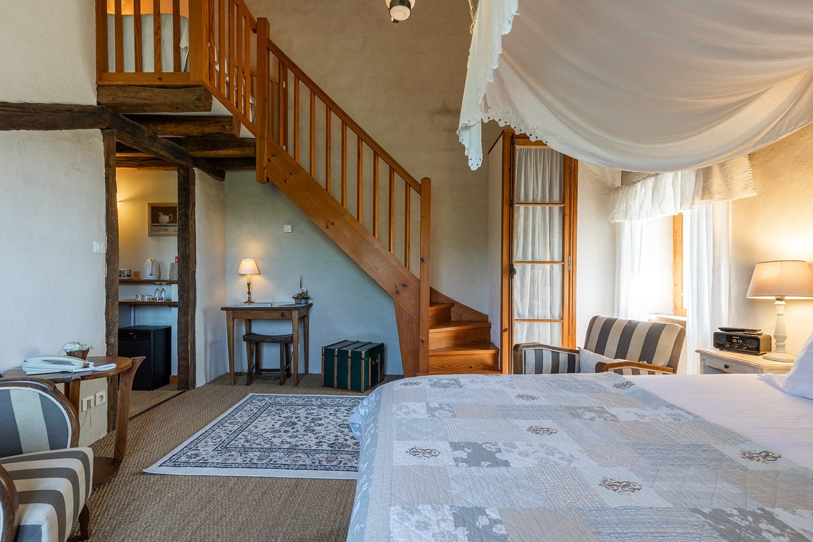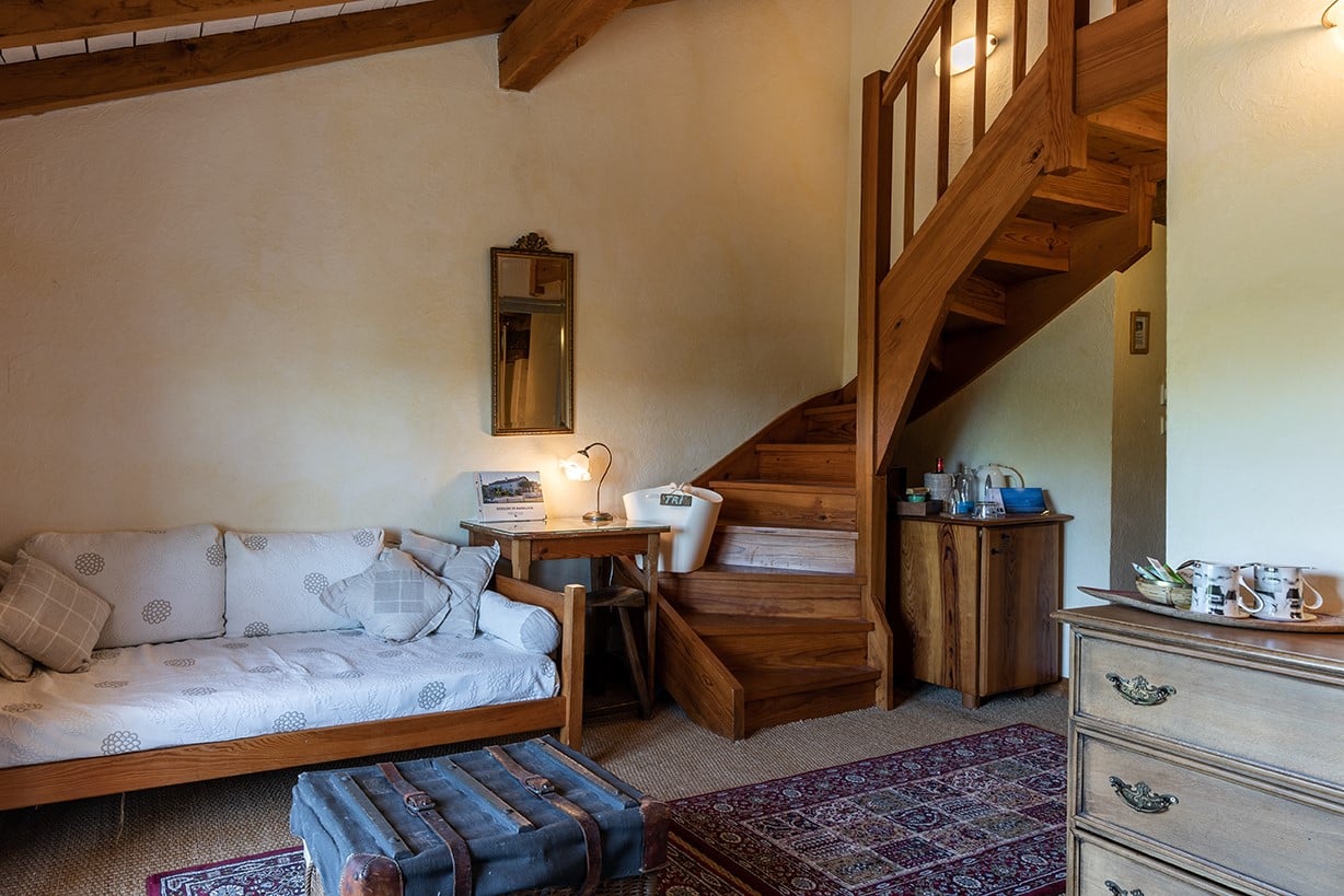 Des espaces modulables : Certaines chambres de la Ferme disposent d’une mezzanine, idéale pour accueillir des enfants ou des amis, tout en préservant l’intimité de chacun.