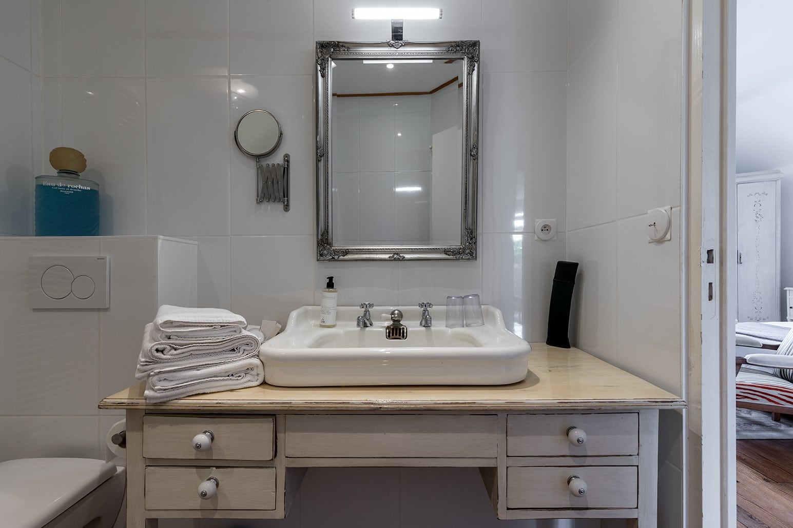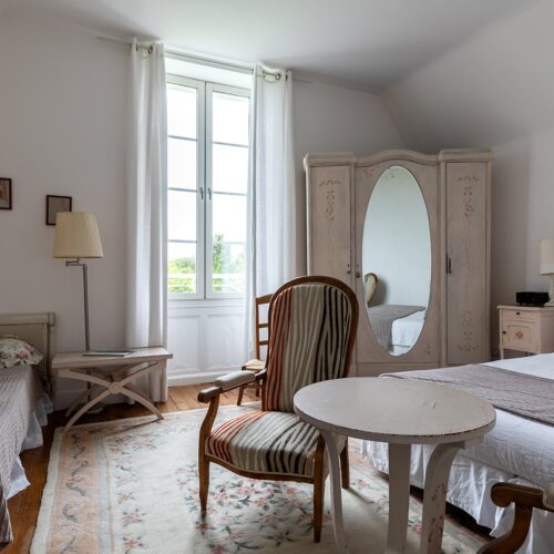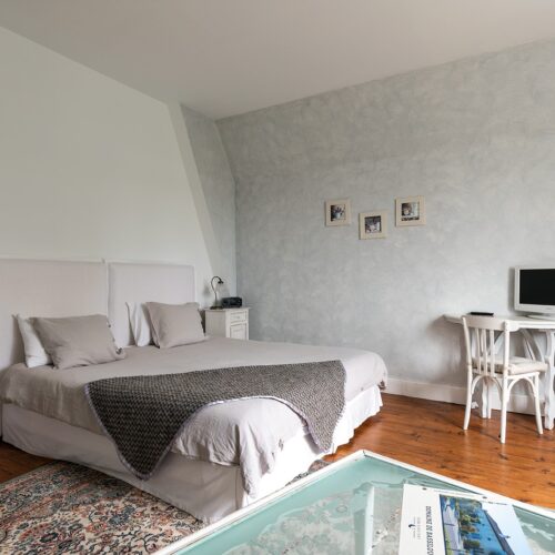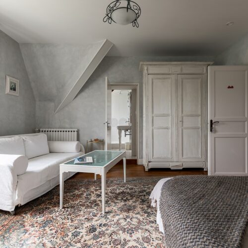 Au sommet du manoir du Domaine de Bassilour à Bidart, les Chambres Supérieures Rubis & Jade se transforment en un élégant appartement de 72 m², idéal pour accueillir familles ou amis (4 à 6 personnes).