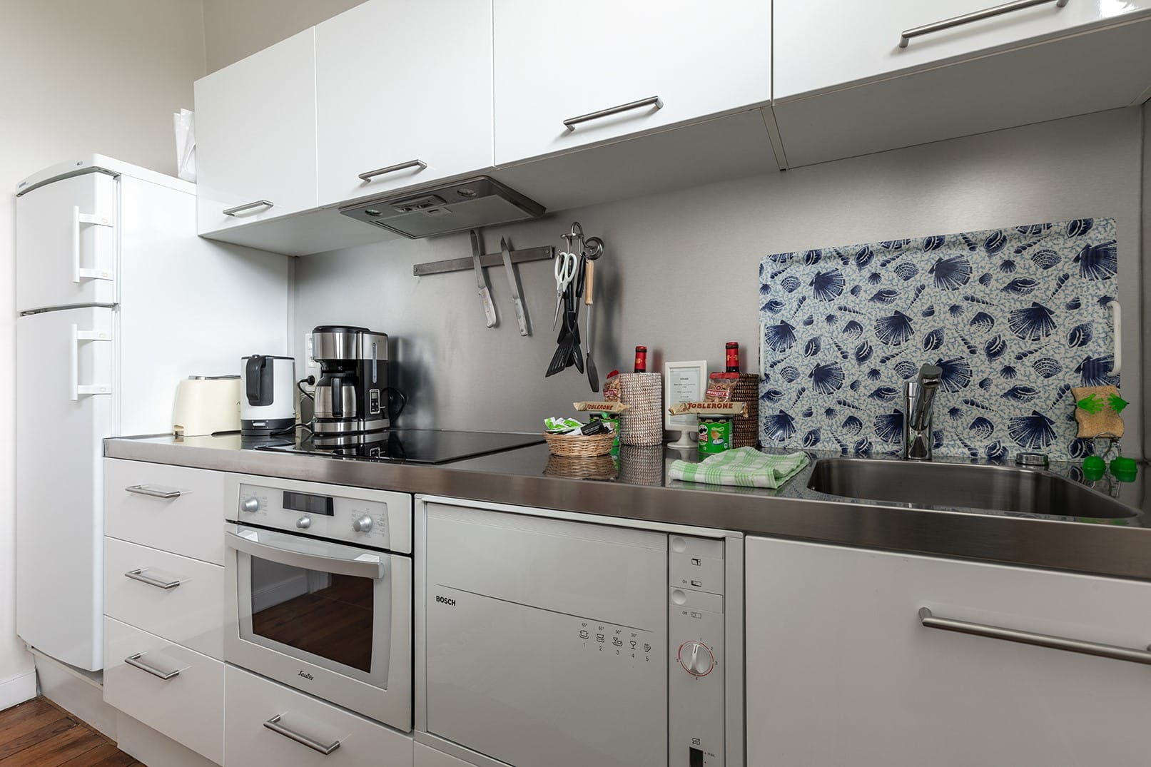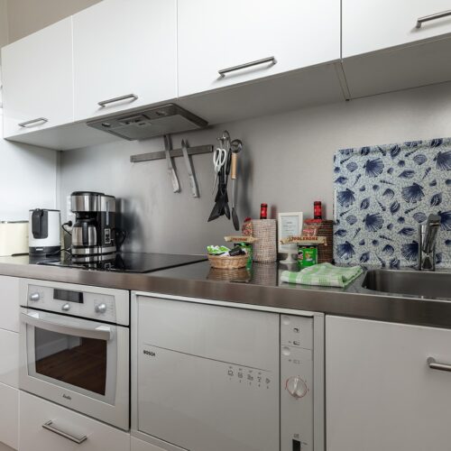 Située entre les deux chambres, une cuisine spacieuse et entièrement équipée est à votre disposition.