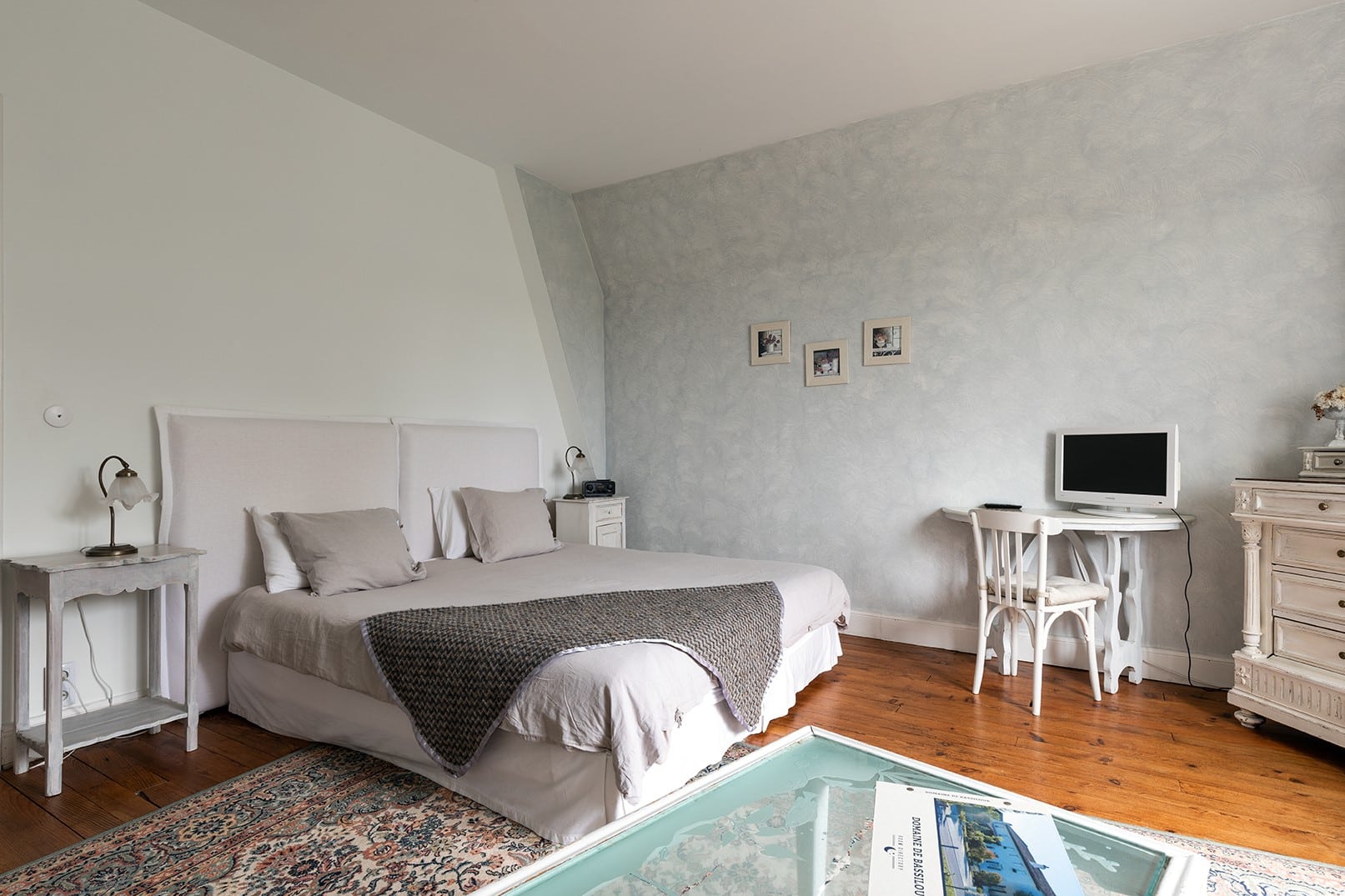 Située à droite, cette chambre spacieuse pouvant accueillir de 2 à 3 personnes, baigne dans une ambiance douce et reposante.